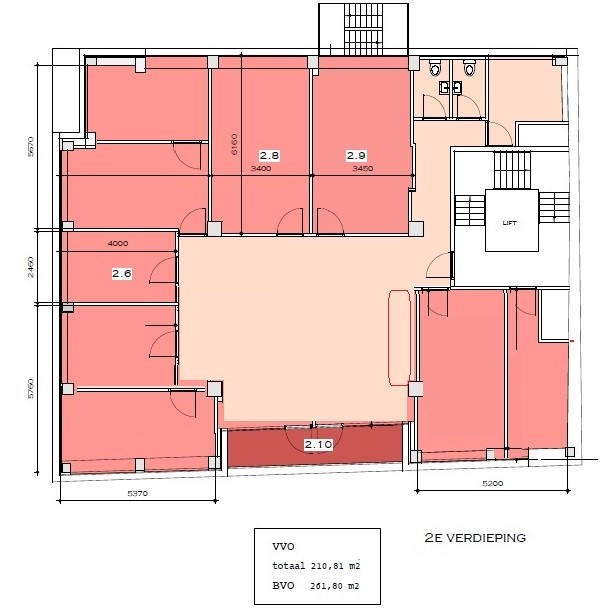 De totale oppervlakte voor verhuur bedraagt circa 211 m² VVO op 2e verdieping. :