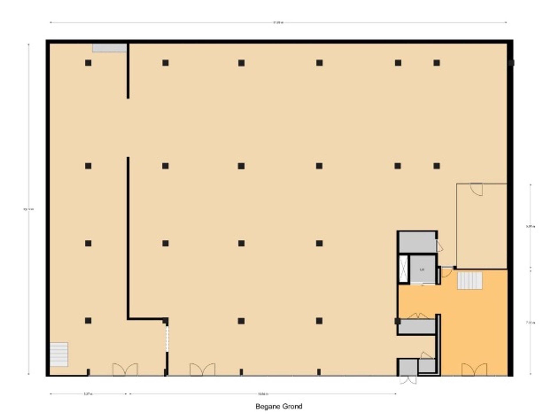 - eerste verdieping: circa 98,8 m² kantine en toiletruimten.