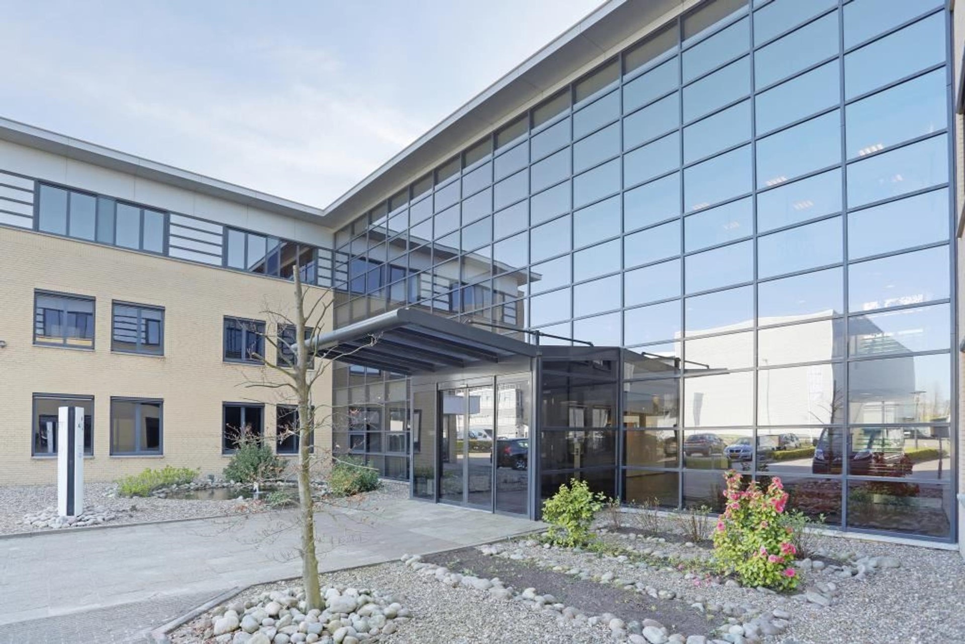 Het betreft een modern kantoorgebouw, waarvan circa 1.050 m² VVO kantoorruimte beschikbaar is voor verhuur, boven elkaar gelegen op de begane grond en de 1e verdieping. Het kantoorgebouw heeft een transparant middengedeelte met een ruime, centraal gelegen entree en een ruim eigen parkeerterrein. Het pand heeft energielabel A.