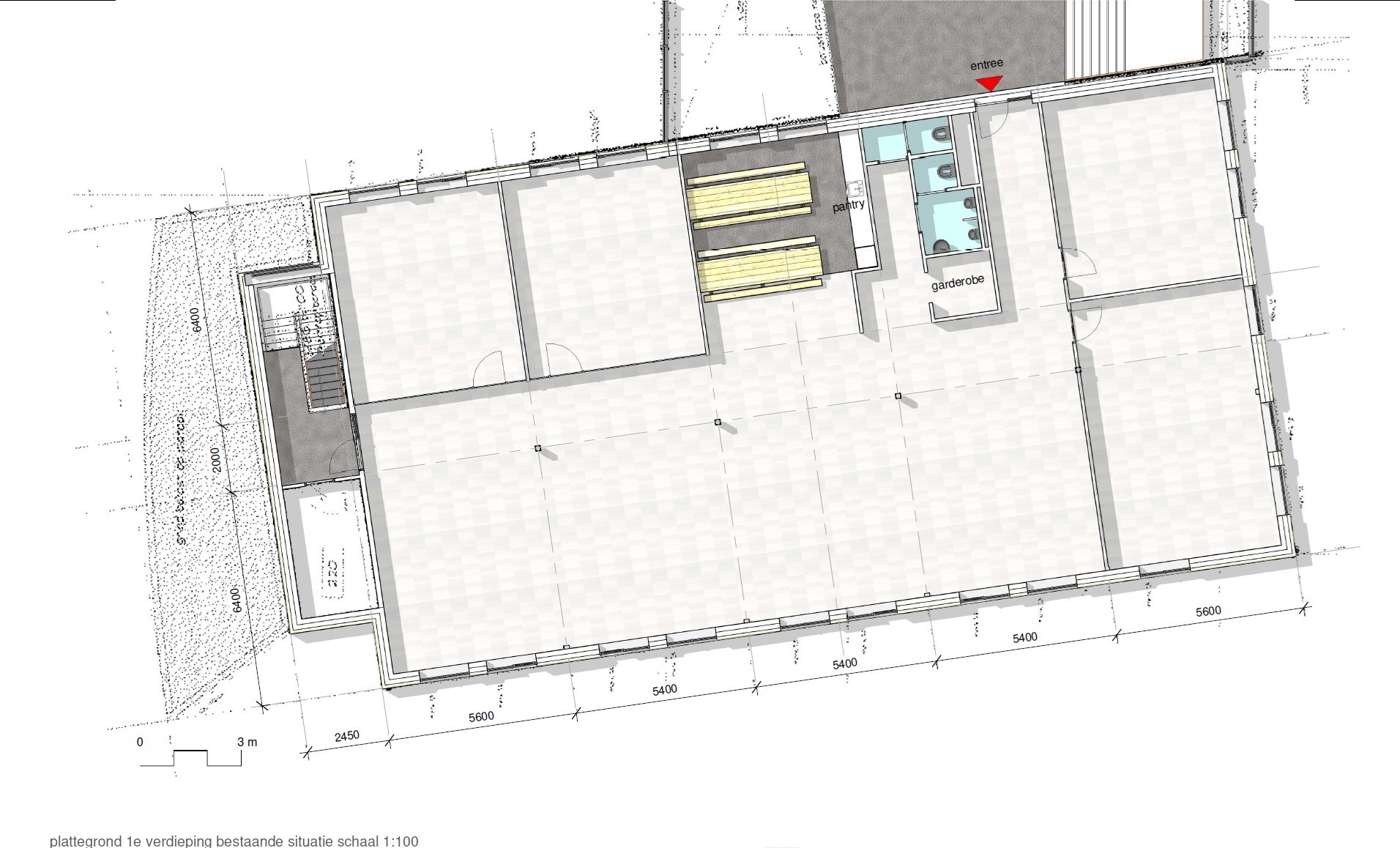 Kantoorunit op de 1e verdieping is voorzien van: