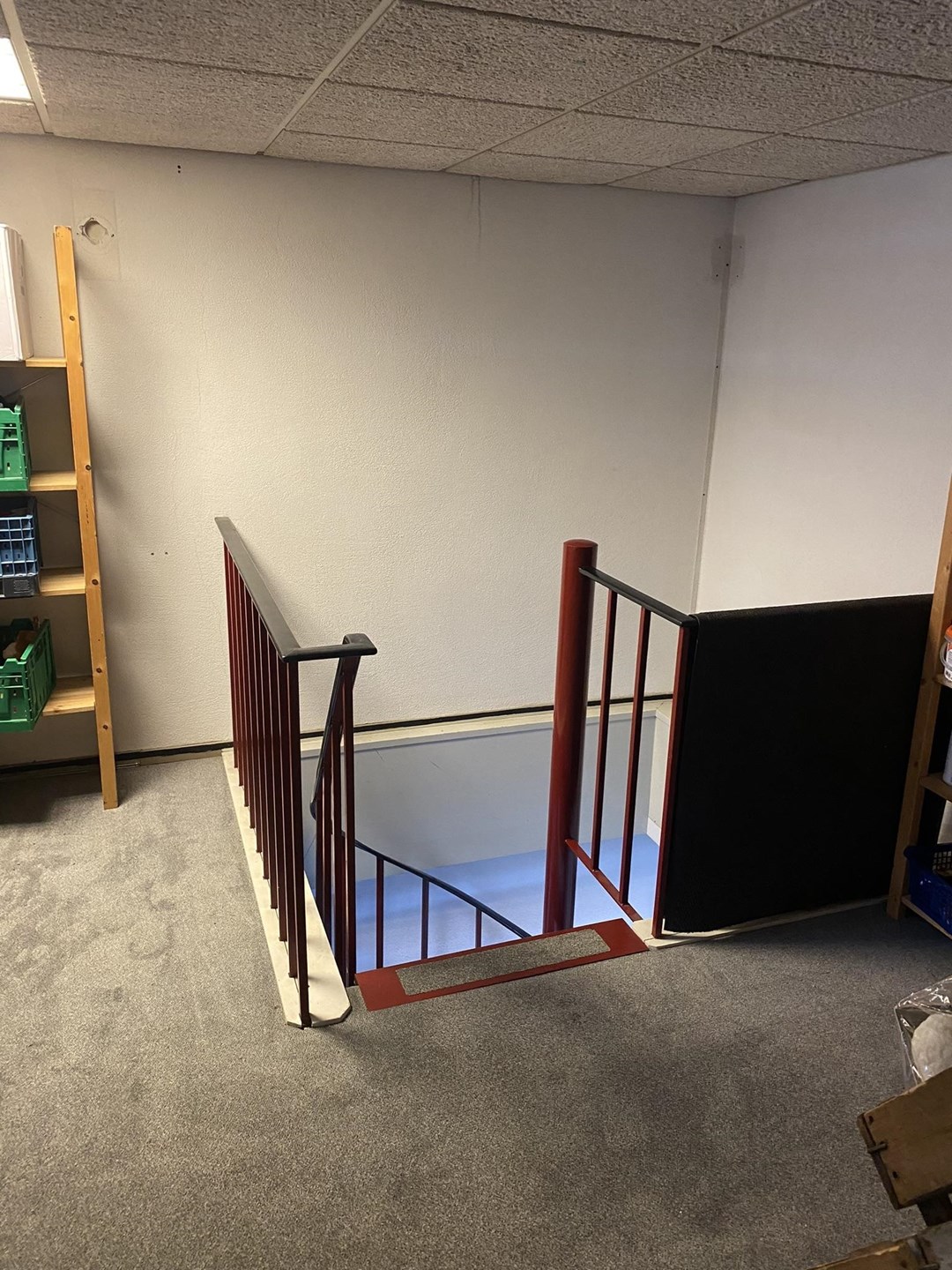 - Open trap naar 1e verdieping, waar 2 kamers zijn met systeemplafonds voorzien van verlichtingsarmaturen.