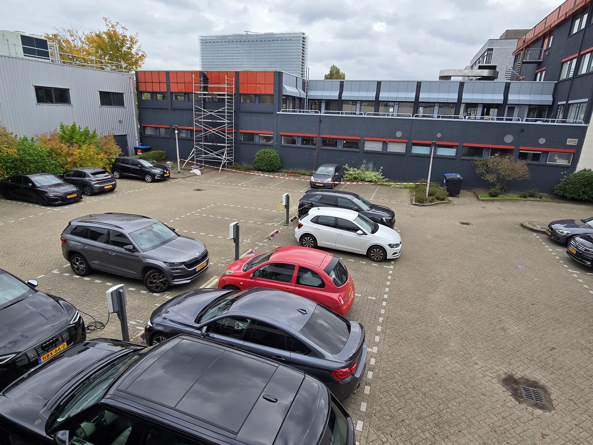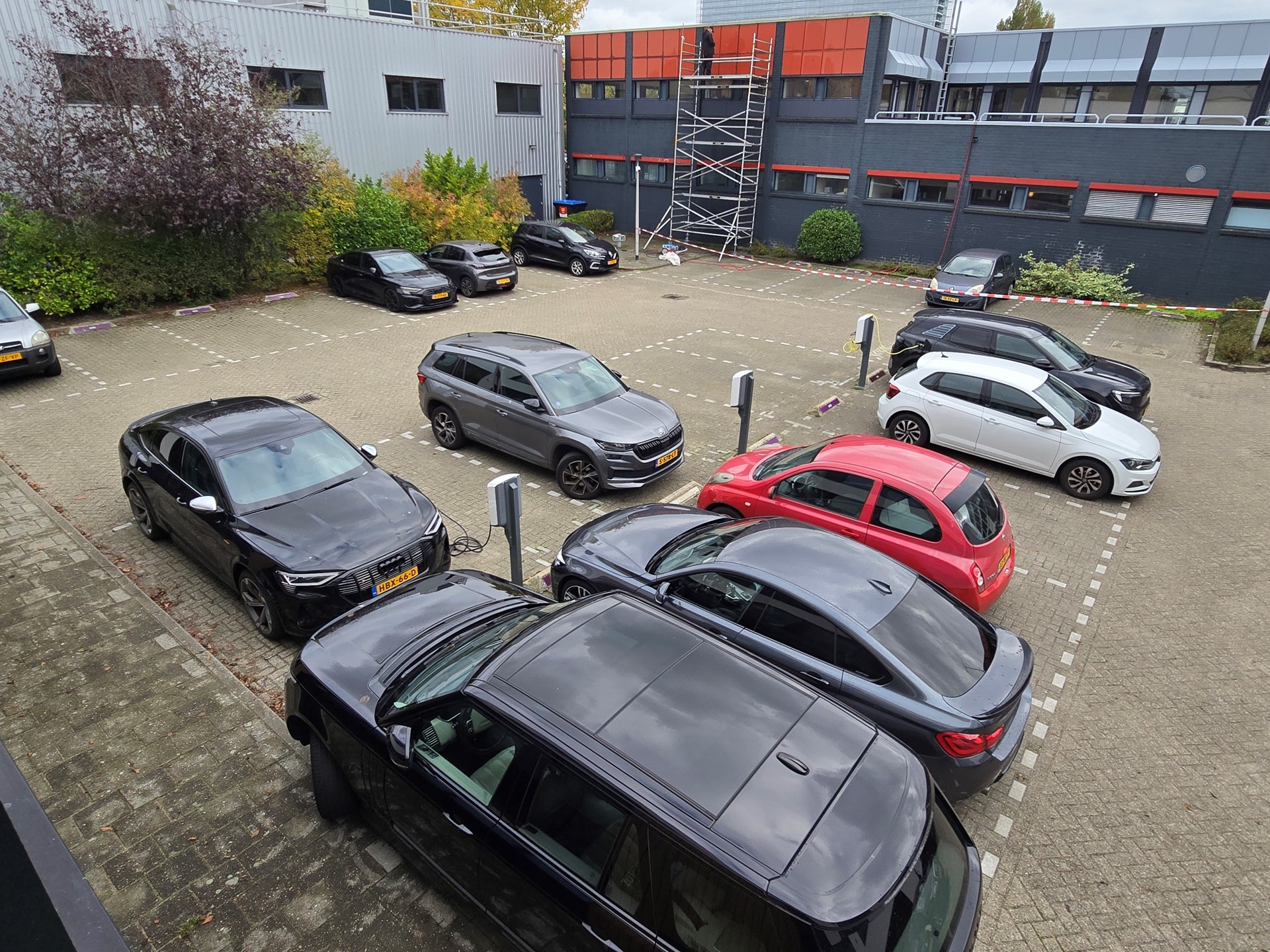 Er zijn 2 parkeerplaatsen beschikbaar op het eigen achtergelegen afgesloten parkeerterrein, waarbij gebruik kan worden gemaakt van de 3 dubbele elektrische laadpalen voor algemeen gebruik.