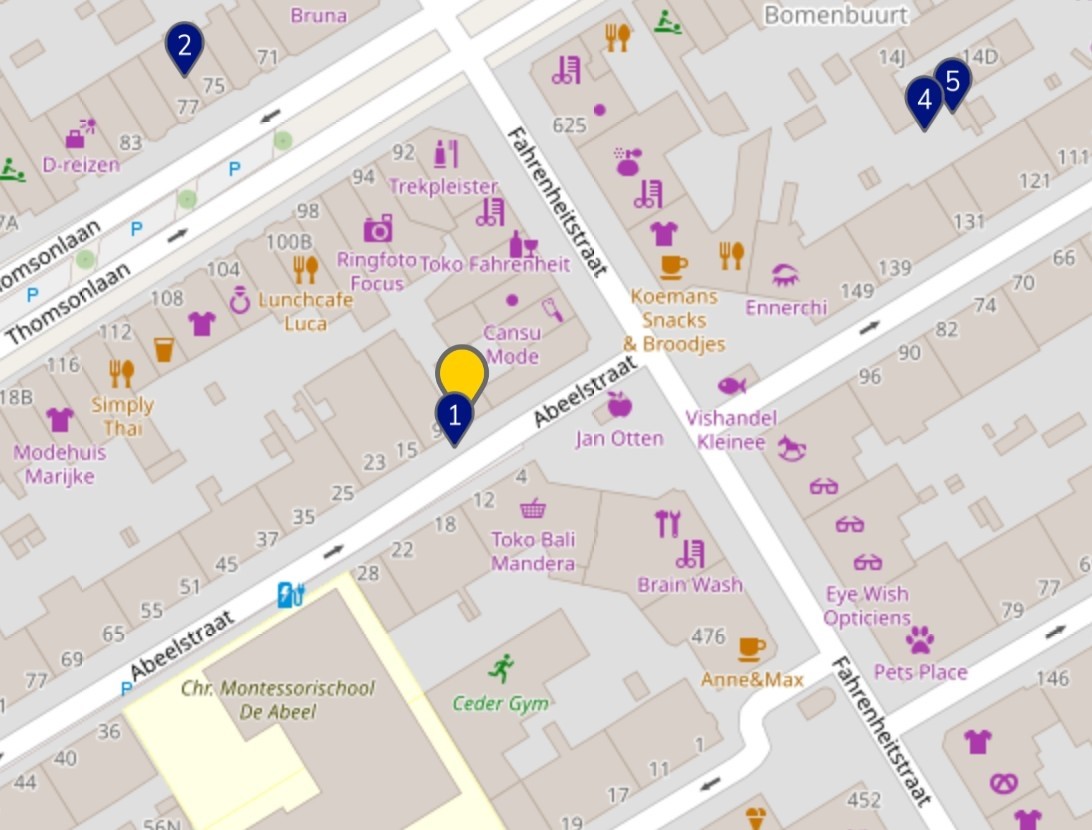2. op de Thomsonlaan maximaal 5 vestigingen zijn toegestaan;