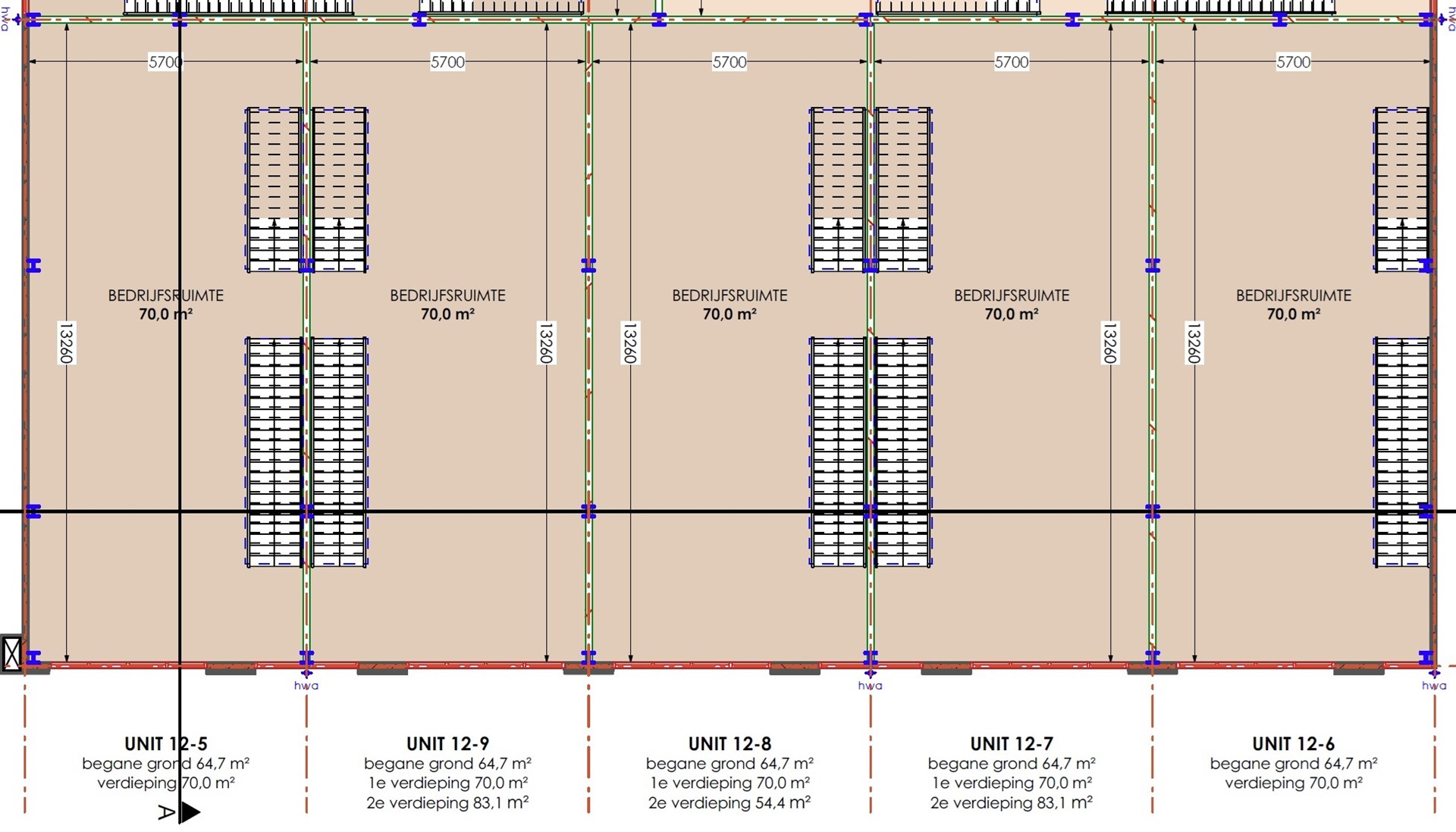 NB: Oppervlaktes zijn indicatief (ca. BVO), inclusief verdiepingen en eventuele dakterrassen. Units kunnen worden gekoppeld.
