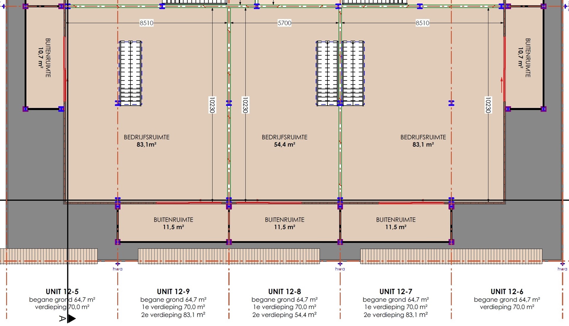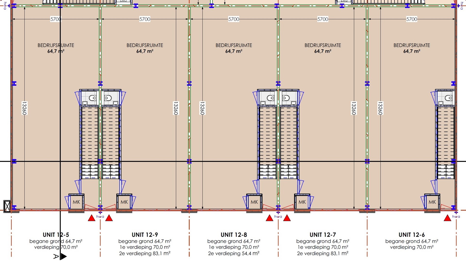 NB: Oppervlaktes zijn indicatief (ca. BVO), inclusief verdiepingen en eventuele dakterrassen. Units kunnen worden gekoppeld.